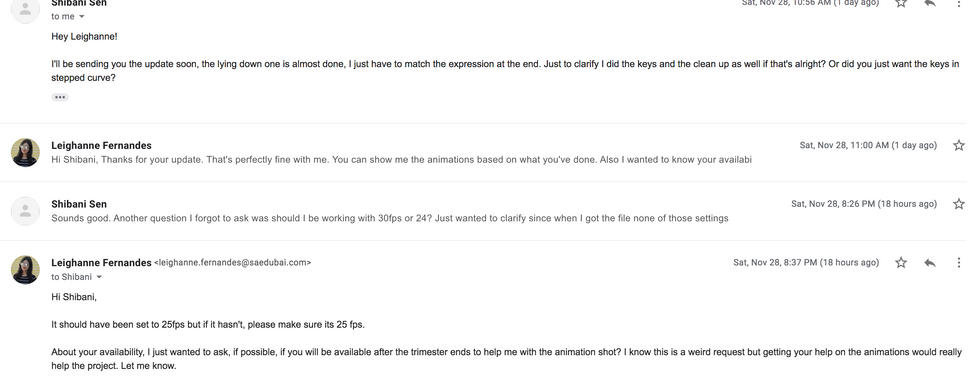 This was the biggest challenge to me because I didn't know what should be prioritized. As I am struggling with the animations, I didn't know if I should get the difficult stuff out of the way first and then work on the easier shots or vice versa. Clearly, the first approach wasn't working and was dragging me down considerably. SO i tried a different method where I finish the easier shots and keep the heavy animations pending for later.